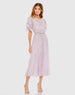Purple High Neck Embellished Flutter Sleeve Midi Dress