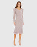 Purple Sequined V Neck Illusion Long Sleeve Trumpet Dress