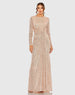 Light Pink Sequined Long Sleeve Side Knot Gown