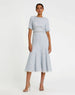 Blue Short Sleeve Beaded Trim Boucle Midi Dress