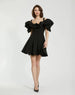 Black Crepe Godet Hem Mini Dress With Faille Ruffle