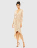 Long-sleeved, fully-sequined cocktail dress with a v-neckline, knot detailing at the waist, and a hi-low hem.