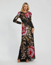 Crafted from stunning sequined fabric, this elegant gown boasts a high neckline and long sleeves. The intricate floral embellishments add a touch of sophistication, perfect for formal events and special occasions.