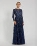 This embellished gown is a breathtaking blend of elegance and glamour. With its high neckline, long sleeves, and allover embellishments, its the perfect gown for evening affairs and black-tie events.