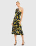 We’re obsessed with the abstract painterly print on this mid-length cocktail dress. The silky dress has a single pleated shoulder and easy, fluid fit. Wear yours for a wedding or evening party with chunky gold earrings and strappy sandals.