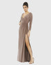 Brown Faux Wrap Jersey Gown w/ Embellished Accents