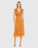 Orange Sequined Wrap Over Cap Sleeve Ruffle Hem Dress