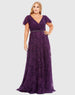Purple Embellished Flutter Sleeve Evening Gown (Plus)
