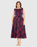 Navy Sleeveless Floral Embroidered Dress