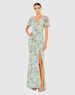 Our Embellished Butterfly Sleeve Faux Wrap Gown embodies timeless elegance and grace. Crafted with a hand-embellished floral mesh overlay and fully lined bodice and skirt, it exudes sophistication. Featuring a flattering V-neckline, delicate short butterfly sleeves, and a faux wrap bodice, it offers timeless charm for any special occasion. Complete with a thigh-high front slit, it ensures you make a stunning entrance wherever you go.