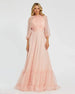 Crafted from delicate chiffon fabric, this gown features a ruffled high neckline and a ruched bodice for a flattering silhouette. With elbow length raglan sleeves, this dress is both elegant and comfortable, perfect for any special occasion.