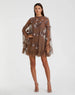 This A-line mini dress features a mesh overlay hand-embellished with beading and sequin details. Crafted from mesh overlay, the dress is fully lined in the bodice and skirt, with sheer unlined sleeves for added flair. Its high neckline and cape sleeves combine to create a modern silhouette.