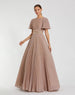 Pink Pleated Shimmering Flutter Sleeve Ball Gown