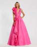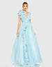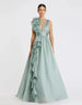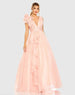 Ruffle Shoulder V-Neck Chiffon Gown