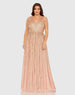 Crafted using embellished mesh fabric, this gown features a fully lined design for comfort and contrast sequin stripe details for added style. The sleeveless design adds sophistication. A must-have for any formal event.