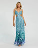 Step into the spotlight with our Thin Strap Cut Out Gown With Ombre Sequins. This dazzling dress features thin straps and a striking cut-out design, accentuating your curves and adding a touch of allure. Adorned with ombre sequins that catch the light beautifully, this gown is perfect for making a glamorous statement at any special occasion.